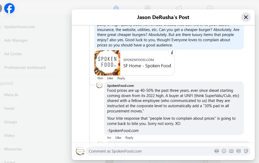 And when SpokenFood stepped in to point out that this wasn’t just “expensive,” but part of a much bigger economic picture, Jason replied: